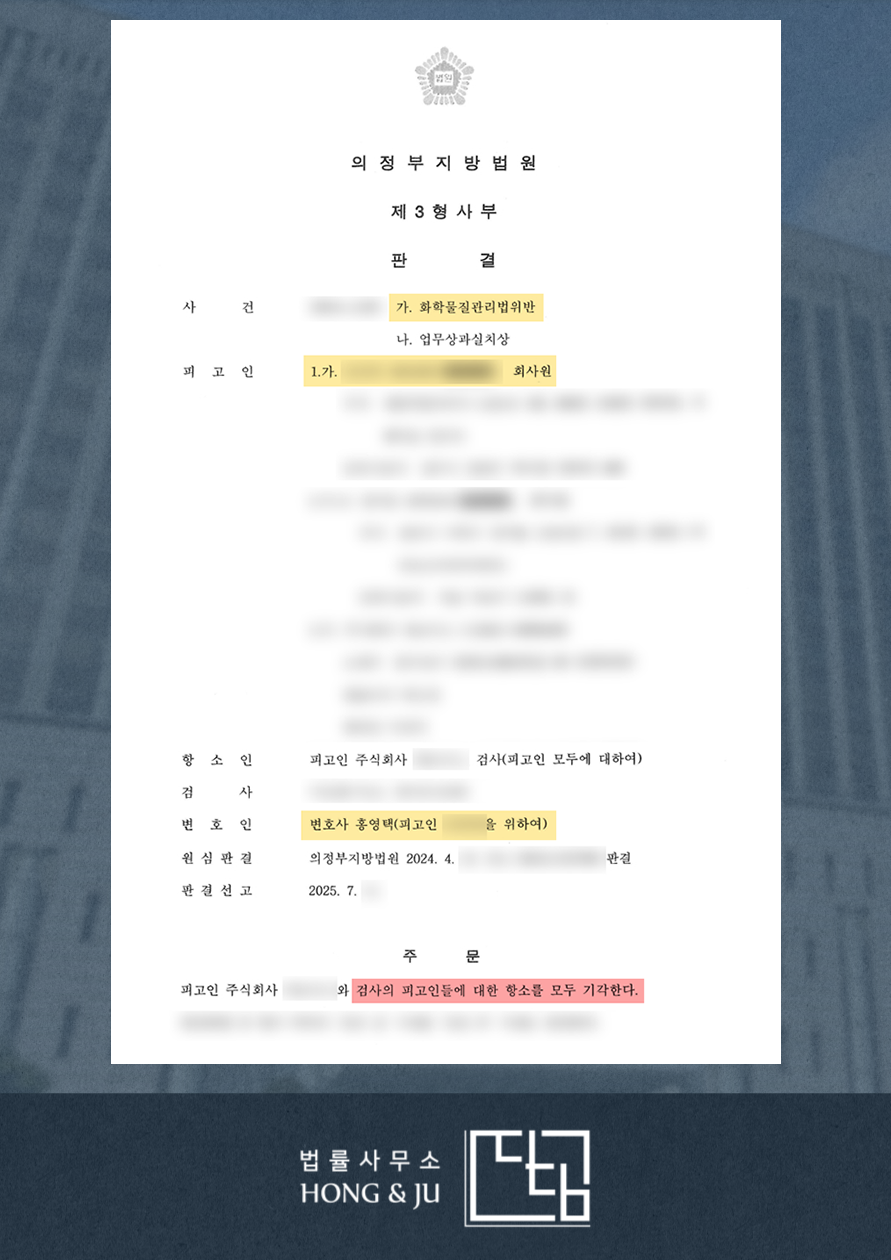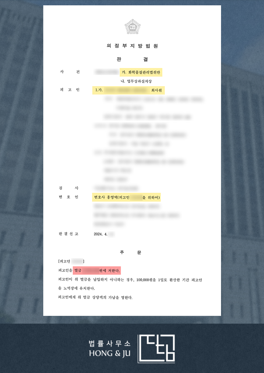 법률사무소 디딤이 법원의 선처를 이끌어 낸 화학물질관리법 위반 사건은 산업현장에서 흔히 발생할 수 있는 법령 미숙지로 인한 위반행위가 형사처벌로 이어질 수 있다는 점, 그리고 회사를 떠난 이후에도 그 책임이 개인에게 전가될 수 있다는 사실을 단적으로 보여줍니다.