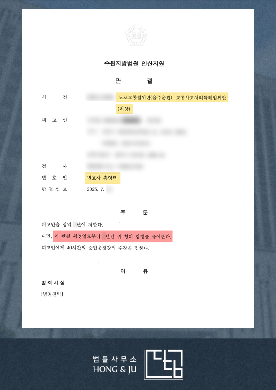 시흥교통사고변호사 '집행유예' 사례 - 음주운전 재범자의 인명 사고